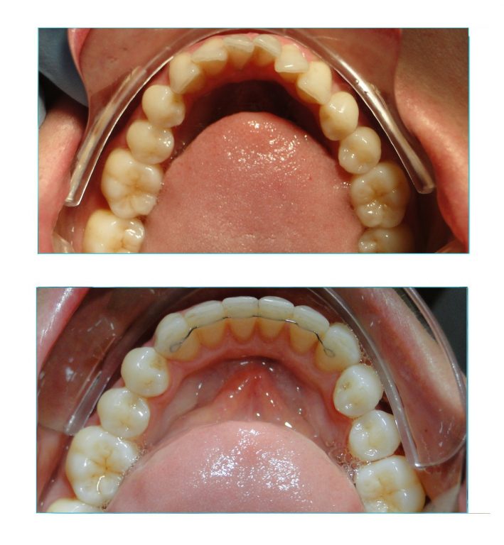 Expansão e alinhamento com aparelho lingual foi a solução usada para corrigir o estreitamento das arcadas nessa paciente.