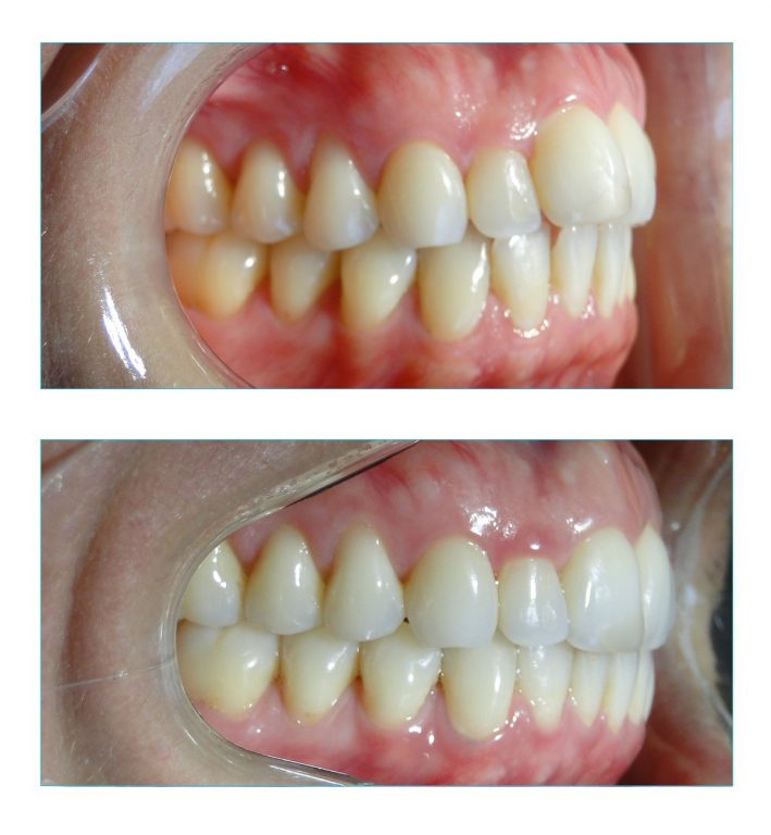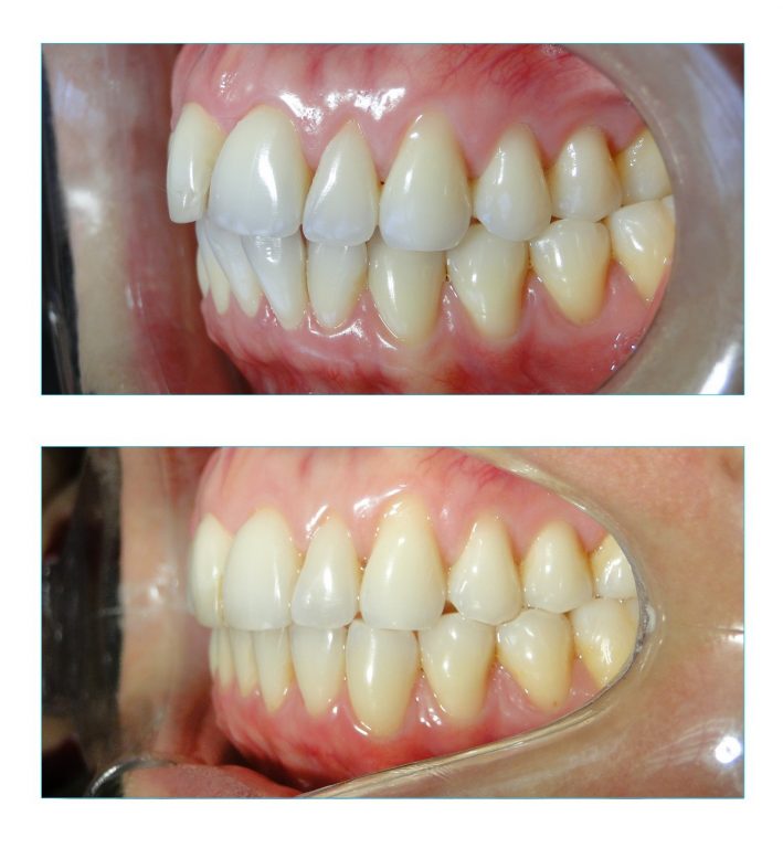 Para melhor acomodação dos dentes, foram realizados desgastes interproximais nos dentes anteriores superiores e inferiores. Como sempre, os desgastes são imperceptíveis quando bem realizados.
